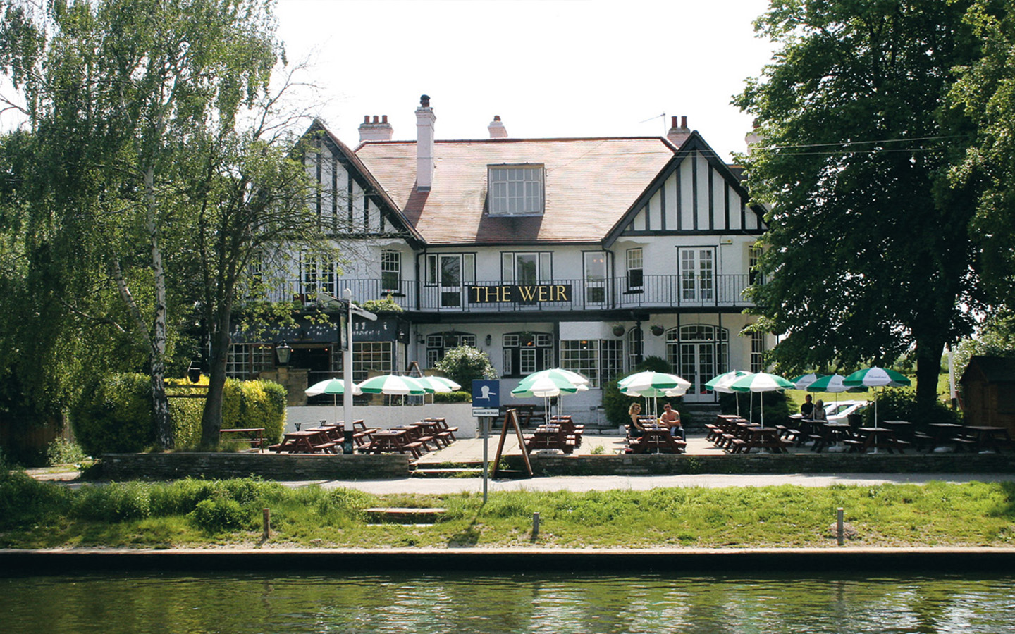 Situated in Walton on Thames, close to Hampton Court, the Weir Hotel is a scenic riverside pub offering comfortable rooms with stunning views.